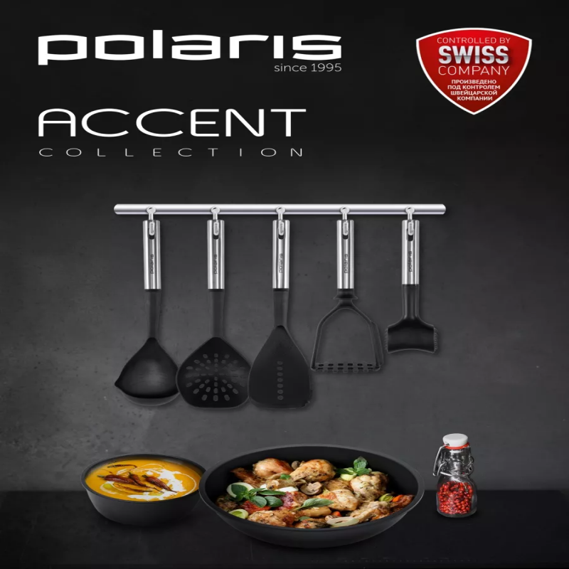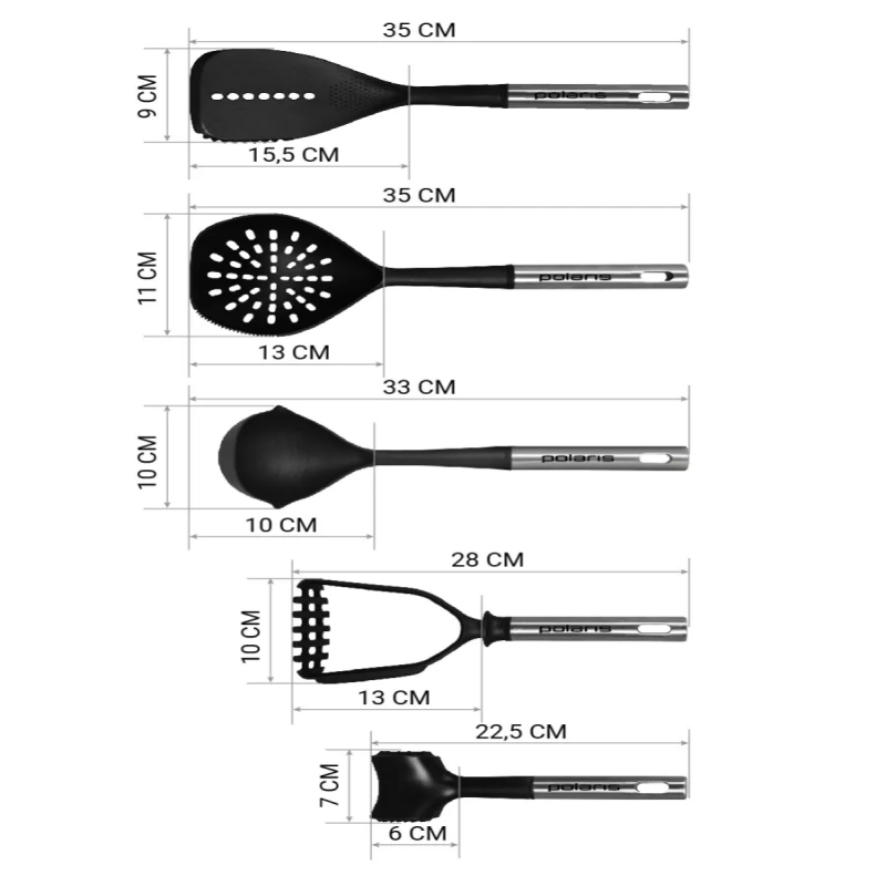| Комплектация | лопатка; половник; картофелемялка; шумовка; молоток для мяса |