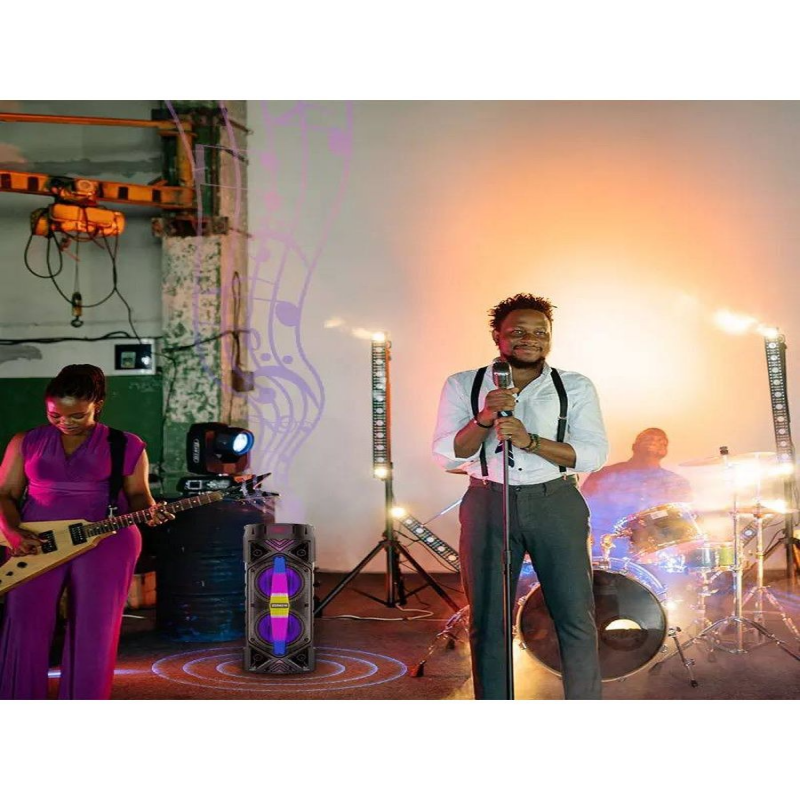 | Доп. опции колонок | караоке система с микрофоном для дома; Радио FM; подстветка; USB, Bluetooth, AUX, microSD, FM |