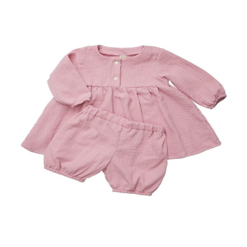 Purpose | Newborn beach tunic with shorts; Newborn girl muslin dress; Girl's muslin suit as a gift |