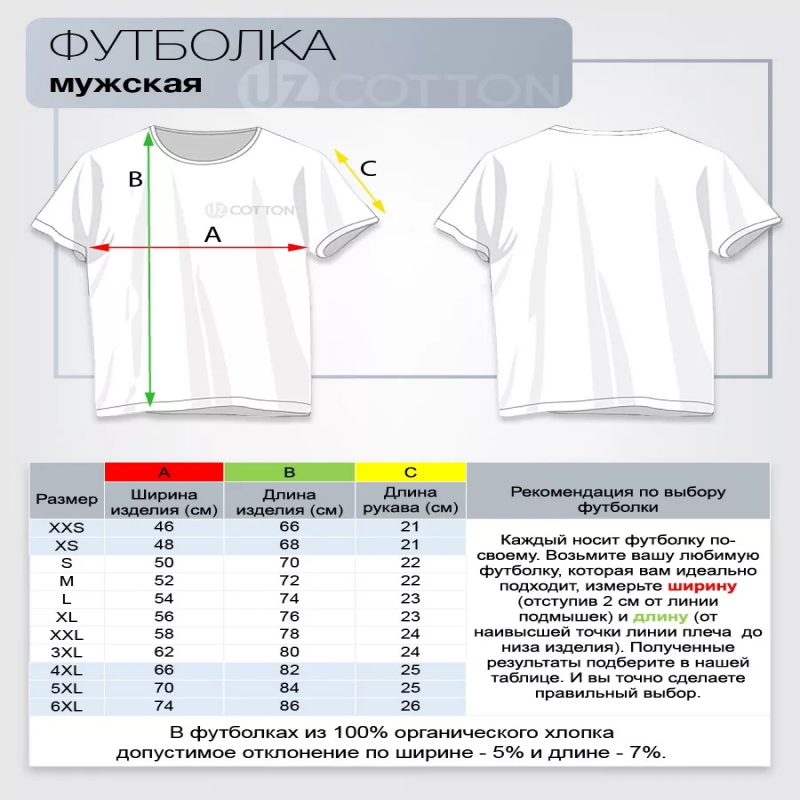 | Комплектация | футболка мужская из хлопка с коротким рукавом - 1 шт |