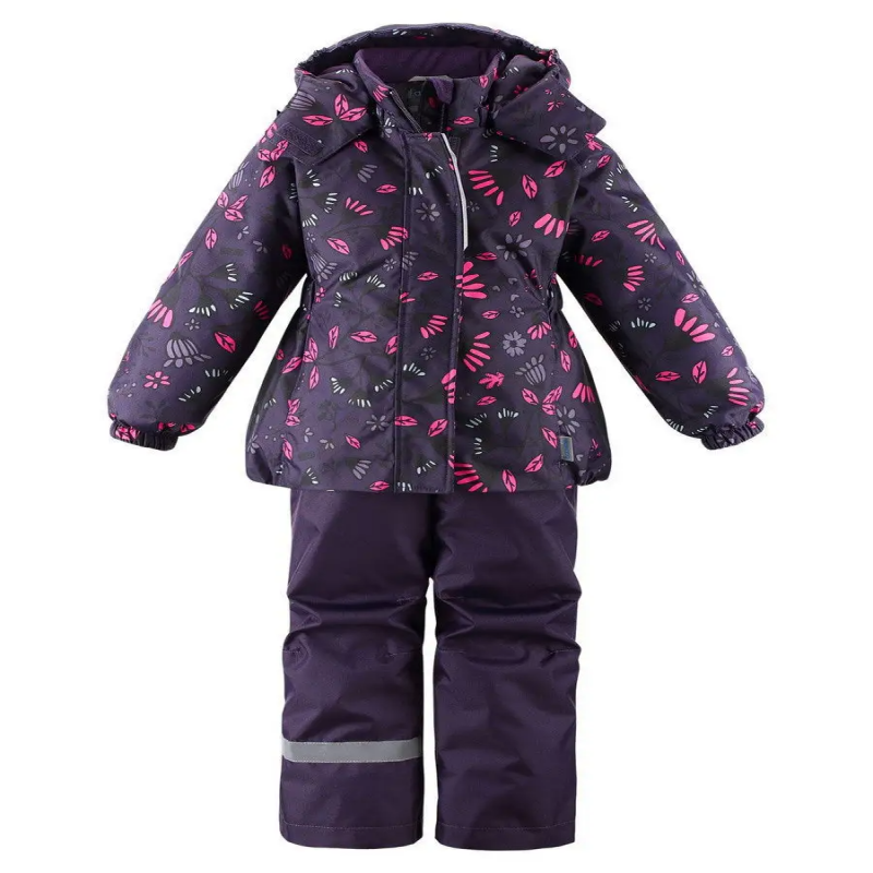 Этот зимний комплект для девочек просто идеален для активного отдыха на свежем воздухе! Брюки изготовлены из сверхпрочного материала и снабжены защитой от снега. Съемные регулируемые подтяжки позволяют откорректировать брюки идеально по размеру, а задний средний шов проклеен для обеспечения водонепроницаемости. Куртка украшена цветочным рисунком и снабжена безопасным и практичным съемным капюшоном, а карманы на липучке сохранят все найденные за день маленькие сокровища! И куртка, и брюки изготовлены из ветронепроницаемого и дышащего материала с водо, и грязеотталкивающей поверхностью.