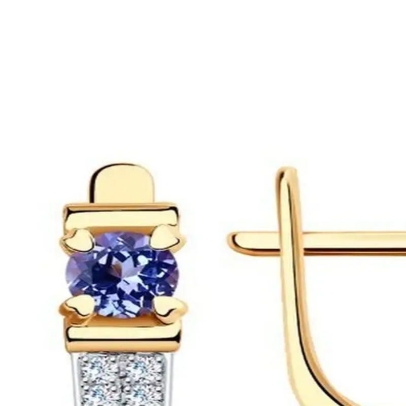 **Серьги из золота с бриллиантами и танзанитами.** Изделие выполнено из золота 585 пробы, вставки 12 Бр Круг 17 0,090 2/3 А, 24 Бр Круг 17 0,90*1,00 0,096 2/3 А, 2 Танзанит Круг 4,00