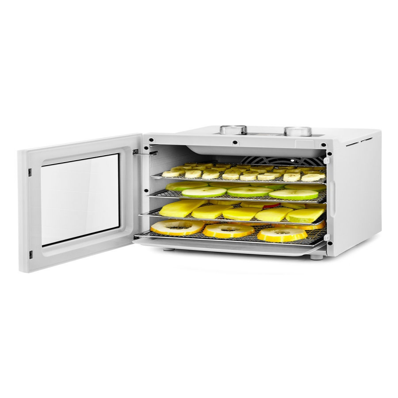 Электрическая сушилка предназначена для сушки овощей, фруктов, ягод, грибов, корнеплодов, трав и зелени, а также мяса и рыбы, хлеба. С помощью специального поддона для жидкости можно готовить пастилу.Сушилка имеет в комплекте 4 поддона из нержавеющей стали и 1 поддона для жидкости.В сушилке установлен мощный нагревательный элемент и вентилятор большого диаметра, обеспечивающий равномерное распределение нагретого воздуха по всему объему камеры. Благодаря горизонтальному обдуву смешение запахов при сушке одновременно разных продуктов минимально. На сушилке можно установить температуру сушки в диапазоне 35-75 *С с шагом 5 градусов. Сушилка оснащена таймером до 24 часов работы с шагом 1 час. Свернуть описание