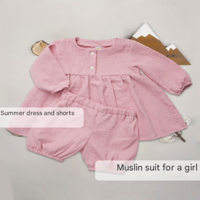 Purpose | Newborn beach tunic with shorts; Newborn girl muslin dress; Girl's muslin suit as a gift |